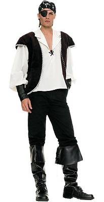 - Includes: Pirate shirt, black vest, boot covers, skull scarf and pirate eye patch.